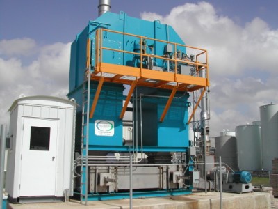 排放自工藝含VOCs的廢氣進入雙槽RTO,三向切換風閥(POPPET VALVE)將此廢氣導入RTO的蓄熱槽(Energy Recovery Chamber)而預熱此廢氣,含污染的廢氣被蓄熱陶塊漸漸地加熱后進入燃燒室(Combustion Chamber),VOCs在燃燒室被氧化而放出熱能于第二蓄熱槽中之陶塊,用以減少輔助燃料的消耗。陶塊被加熱,燃燒氧化后的干凈氣體逐漸降低溫度,因此出口溫度略高于RTO入口溫度。三向切換風閥切換改變RTO出口/入口溫度。如果VOCs濃度夠高,所放出的熱能足夠時,RTO即不需燃料。例如RTO熱回收效率為95%時,RTO出口僅較入口溫度高25℃而已。