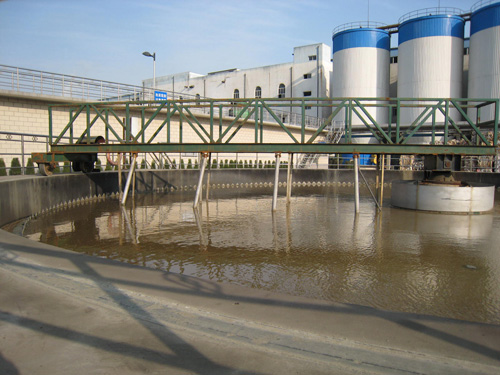 本機型多用于大直徑的輻流式沉淀池的機械亂泥。為雙周邊驅動,中心支墩式,上部設有浮渣收集裝置,采用中心配水,利用液位差自吸式排泥,適宜的直徑范圍大于18米。